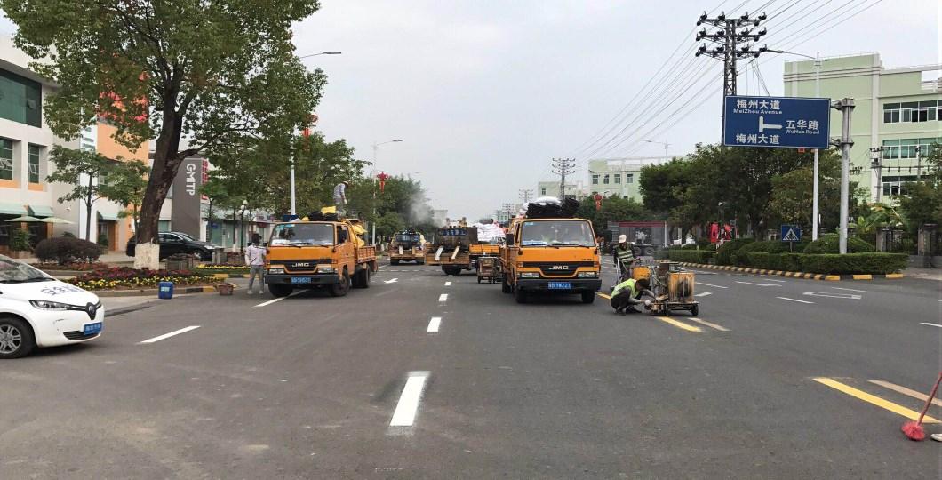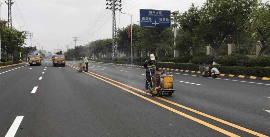 梅州大道位于廣東省梅州市區(qū)的梅城江北梅州中學附近,是屬于早期建設(shè)的市政道路之一。梅州大道因客戶需求,工期比較急,創(chuàng)安全交通出動了7部施工車,用時2天了,完成了18000多方的標線,解決了客戶的需求。當然我們的創(chuàng)安全交通對劃線不僅是要量更加要求保質(zhì),所以我們的標線雖然做的快捷,但是質(zhì)量卻是沒有絲毫的降低。