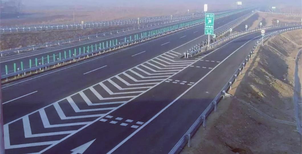 (2)在高速公路、國(guó)省干線公路的進(jìn)出口部分,主線上的車道與進(jìn)口或出口匝道形成V形的區(qū)域,需要用導(dǎo)流線來(lái)填充。