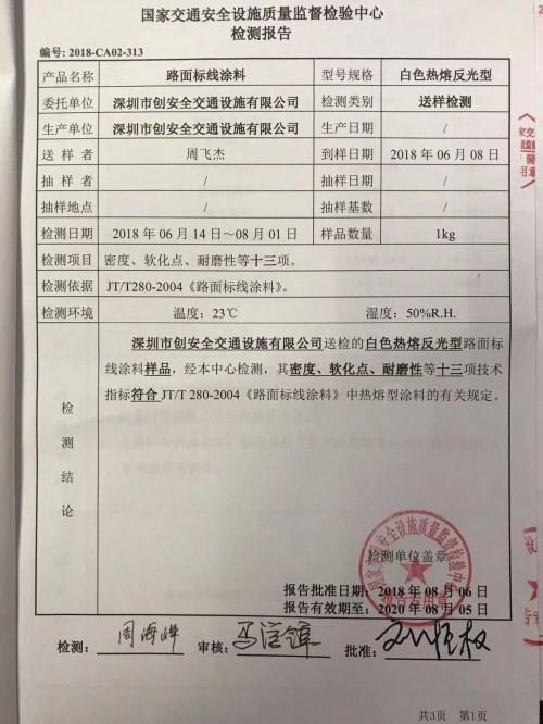 創(chuàng)安全交通設(shè)施的熱熔反光涂料是一款比較優(yōu)質(zhì)的涂料,是得到國(guó)家質(zhì)檢中心認(rèn)可的。
